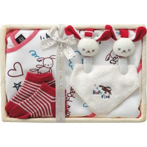 『出産祝 ベビーギフト プレゼント お祝い 内祝などに人気の商品』 BORN FREE お食事4点セット(カゴ入り) レッド