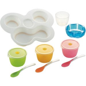 【セット内容】●カップ(Φ6.5×4.7cm)・レンジフタ・やわらかスプーン×各3、プレート(21.5×17×3cm)・目盛付カップ・クールシート×各1