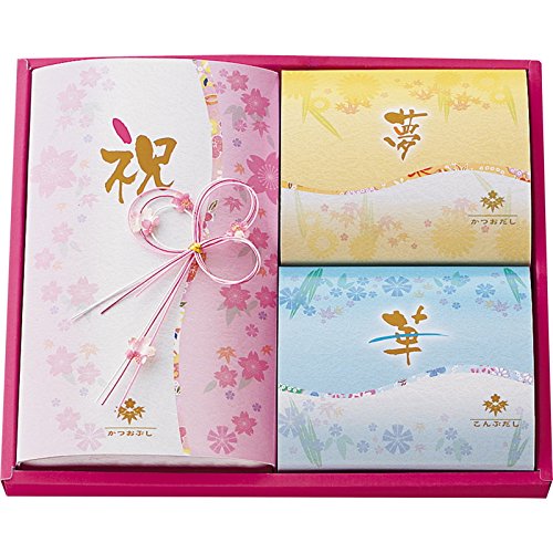 ☆☆カツオパック、かつおだし、こんぶだしをパステルカラーの愛らしい小箱に詰めました。 【セット内容】 ●鰹枯節カツオパック(2.5g×6袋)・かつおだし・こんぶだし(各8g×8袋)×各1 【賞味期間】 ●常温1年 【備考】 ●23.5×28×4.2cm/半紙 【1梱包最大入数】 ●15個入