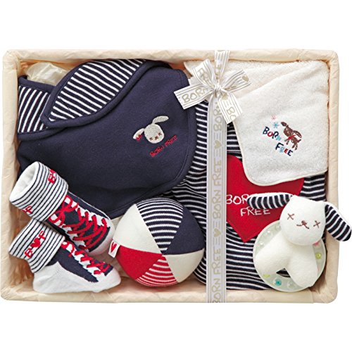 ≪内祝い 引き出物 お祝い お返し 快気祝い 御礼 引越し ご挨拶 プレゼント 出産祝い ベビー服 出産祝い お祝い プレゼント ギフト≫ BORN FREEおでかけ6点セット(カゴ入り)(ネイビー) 【包装・のし・印字無料】