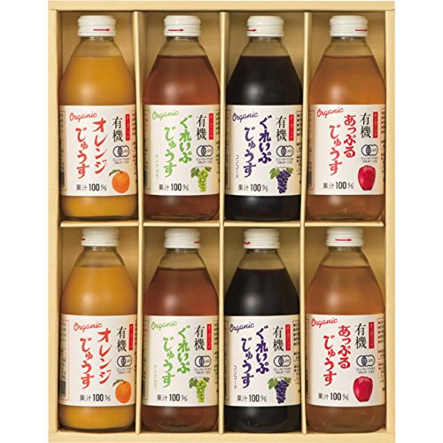 ☆☆有機的手法で栽培された、濃縮されていない100%ストレートジュースです。有機JAS認証品です。 【セット内容】 ●オレンジジュース・アップルジュース・グレープジュース(白ぶどう)・グレープジュース(各250ml)×各2 【賞味期間】 ●常温1年6ヶ月 【備考】 ●36×28.5×6.5cm/中杉 【1梱包最大入数】 ●4個入