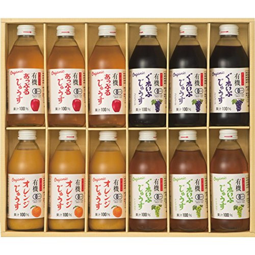 ☆☆有機的手法で栽培された、濃縮還元していない100%ストレートジュースです。有機JAS認証品です。 【セット内容】 ●オレンジジュース・アップルジュース・グレープジュース(白ぶどう)・グレープジュース(各250ml)×各3 【賞味期間】 ●常温1年6ヶ月 【備考】 ●36×40×6.5cm/中杉 【1梱包最大入数】 ●3個入