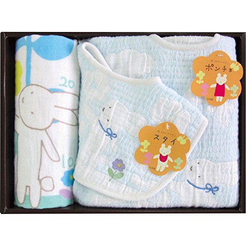 - ☆ご出産お祝いやお誕生日のプレゼントに人気のギフトです。/【セット内容】 ●ポンチョ(32×27cm)・スタイ(27×25cm)・フェイスタオル(34×80cm)×各1/【材質】 ●ポンチョ・スタイ:綿79%・ポリエステル20%・ポリウレタン1%、フェイスタオル:綿100%/【原産国及び生産国】 ●日本/【箱サイズ】 ●24.2×34.7×5.1cm/中杉/【1梱包(カートン)最大入数】 ●24個