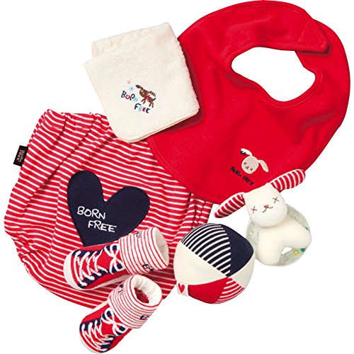 ≪出産祝い お祝い 誕生日 プレゼント 人気のギフトセット≫ BORN FREE おでかけ6点セット(カゴ入り) レッド 【メッセージカード無料】