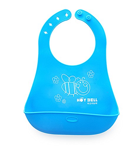 お手入れ簡単 安心シリコンよだれかけ ポケット付き エプロン スマートビブ (ブルー)