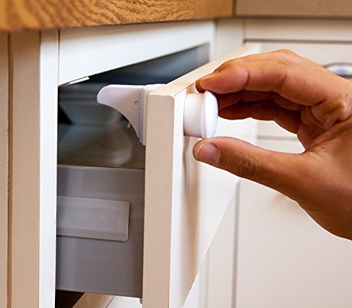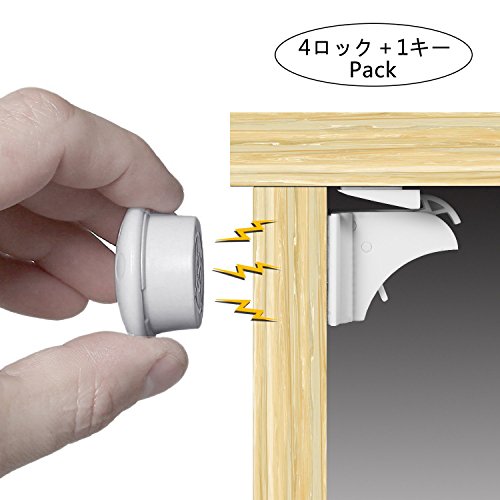 Linkax 赤ちゃん安全磁気キャビネットロック ベビーガード インストール簡単 工具不要 3Mテープ付き (4ロック+1キー)