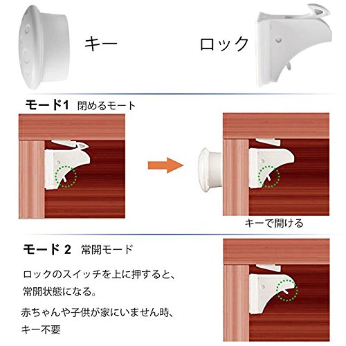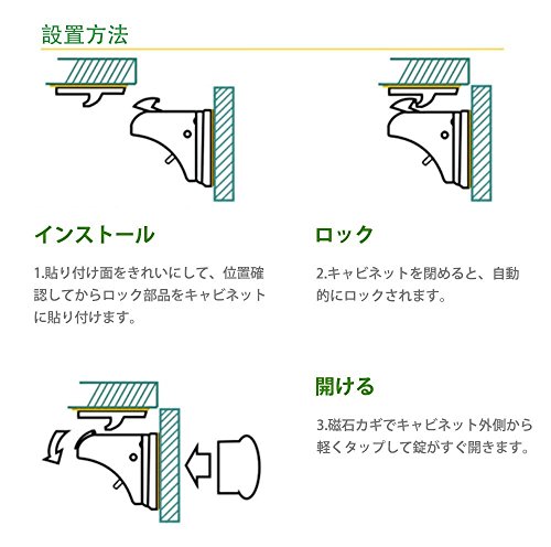 - 【簡単使用】部品の裏に強力な両面テープがついて、家具に貼り付けます。磁石カギが引き出しに近づくすると、ロックがすぐ開きます。引き出しを閉じると自動的にロックされます。