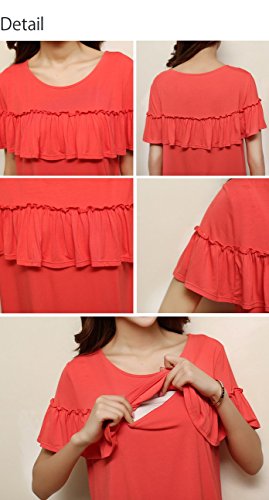 【Linopua】オシャレデザイン♪ 授乳服 人気のカラーバリエーション トップス (L, ピンク)