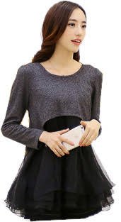 【Linopua】 授乳服 ドレス マタニティ 結婚式 授乳中でもオシャレに着こなす♪ (グレー, M)