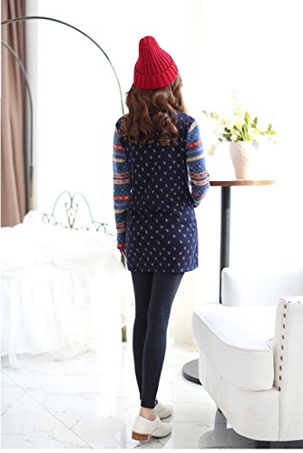 【Linopua】 袖 ポケットの柄がかわいい♪ 裏起毛 授乳服 マタニティ (ネイビー, XL)