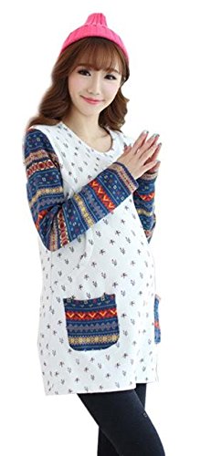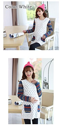【Linopua】 袖 ポケットの柄がかわいい♪ 裏起毛 授乳服 マタニティ (ホワイト, M)