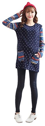 【Linopua】 袖 ポケットの柄がかわいい♪ 裏起毛 授乳服 マタニティ (ネイビー, M)