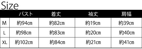 - L バスト約94~110㎝ 着丈約77㎝ 袖丈約34㎝ 肩幅約39㎝ XL バスト約98~114㎝ 着丈約78㎝ 袖丈約34㎝ 肩幅約40㎝