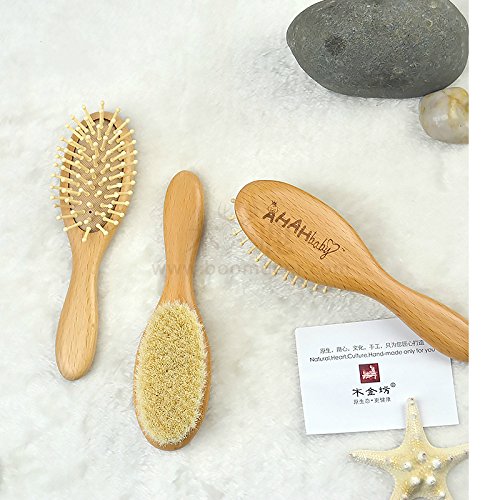 ★生まれたばかりの赤ちゃんのやわらかい髪のためのやわらかい100%天然山羊(やぎ)毛のヘアブラシです。
