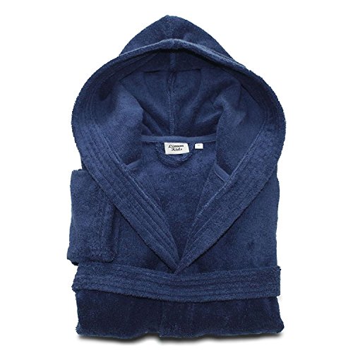 Size:Small ツ?|ツ? Color:Midnight Blue Explore Linum kids' exceptionally absorbent, lavishly soft bathrobes that are made with 100percent Turkish combed cotton looped Terry. Neck area is covered with soft fabric to make it more delicate and more durable for the comfort of your kids and a 'never lose' belt is stitched down in the back for their security. Midnight Blue boy's cozy Terry bathrobe has detailed stitches all around the front trim, hood, cuffs and a full stitched trim belt.