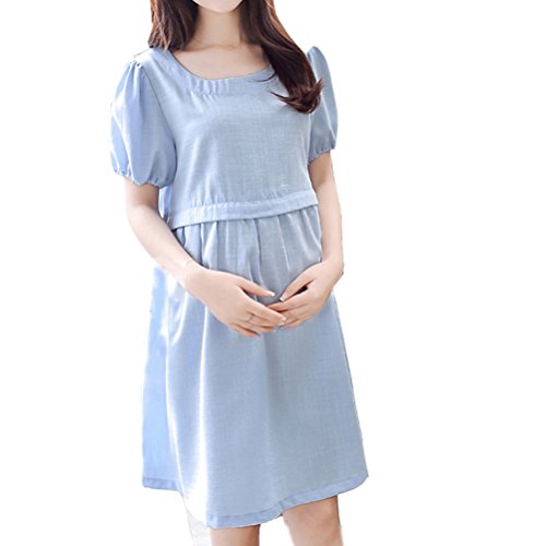 Linyuan ファッション Solid Color Cotton Linen Long ドレス Dress Short Sleeve Maternity Clothes