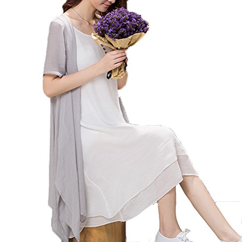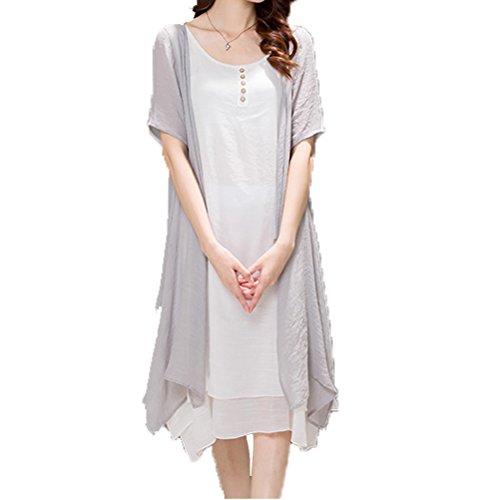 Linyuan ファッション Maternity Dress マタニティドレス Loose 2PCS Cotton Linen Short-Sleeved Dress