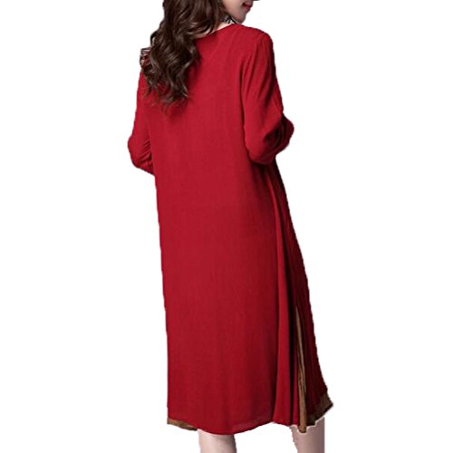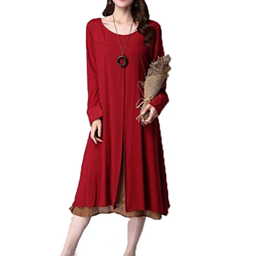 Linyuan 特大の Women's 2Pcs Long Sleeve Cotton & Linen Casual Long スカート Dress