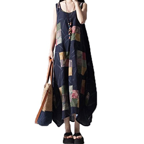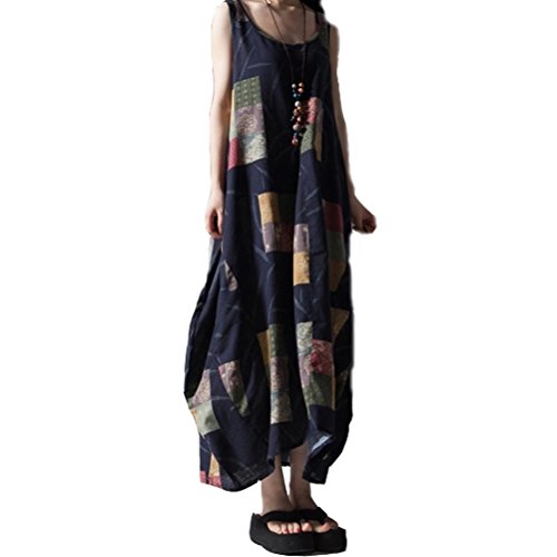 Linyuan ファッション Womens Oversized Roomy Sleeveless Cotton Mid-Long Shift スカート Dress #302H9078