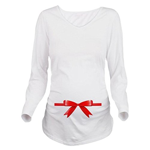 Linyuan ファッション Cute Pregnancy Women Loose Tシャツ T-Shirt Red Ribbon Bow Print for Maternity Tee K135