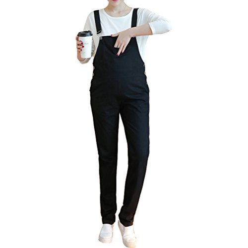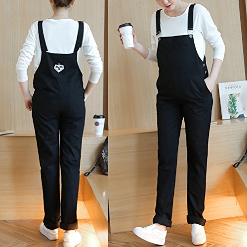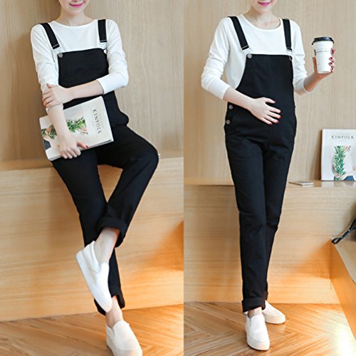 Linyuan ファッション Women Pregnant Maternity マタニティウェア・授乳服 Soft Casual Pants Suspender Bib Trouser+White T-Shirt