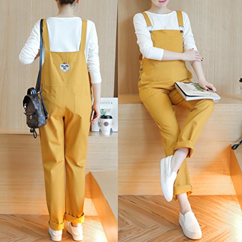 Linyuan ファッション Women Pregnant Maternity マタニティウェア・授乳服 Soft Casual Pants Suspender Bib Trouser+White T-Shirt