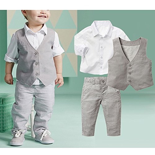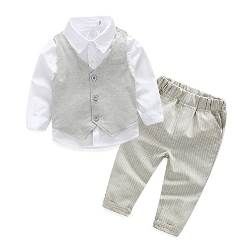 Linyuan ファッション Kids Baby Boys Handsome Gentlemen Long Sleeve Shirt Vest Pants Set セット 3PCS