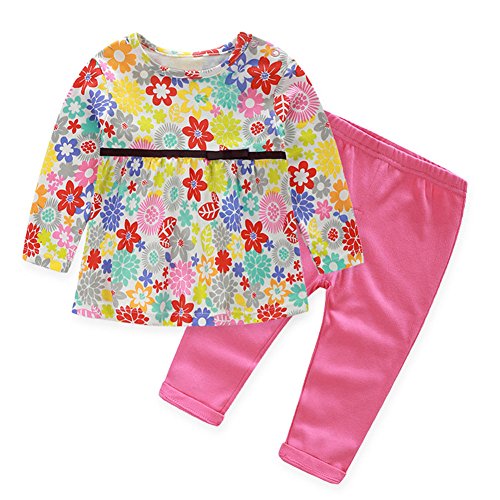 Linyuan ファッション Baby Girls Newborn Cute Long Sleeve Floral T-shirt & Pants Set セット Cotton Clothes