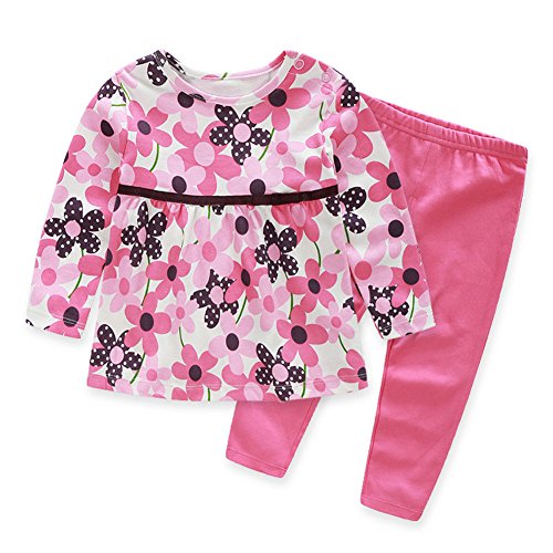 Linyuan ファッション Baby Girls Newborn Cute Long Sleeve Floral T-shirt & Pants Set セット Cotton Clothes