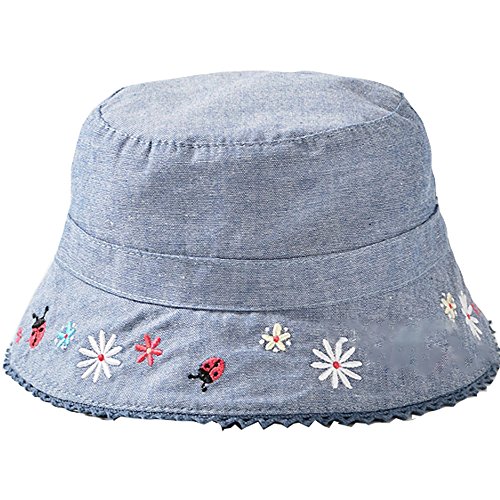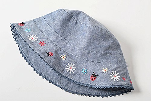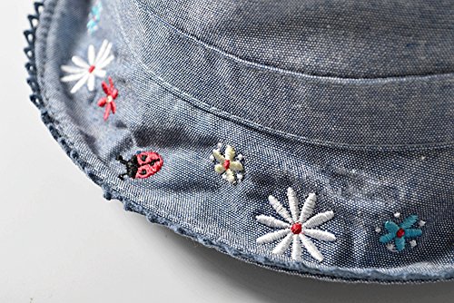 Lisa Pulster ベビー キッズ 帽子 幼児用 デニム コットン ハット かわいい日差し 対策 日よけに 花柄 昆虫柄 刺繍 肌触りいい uv カット 夏 (45(頭43-44cm))