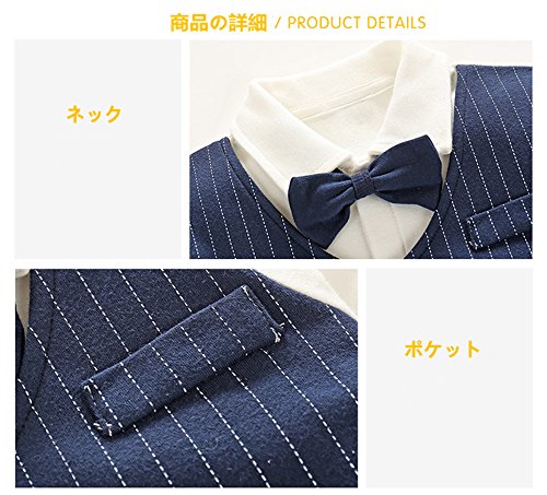 Lisa Pulster ベビー服 男の子 カバーオール ロンパース フォーマル セレモニー 春秋 結婚式服 出産お祝い キッズ 綿 柔らか 外出服 (ネイビー, 80cm(身長73ー80cm))