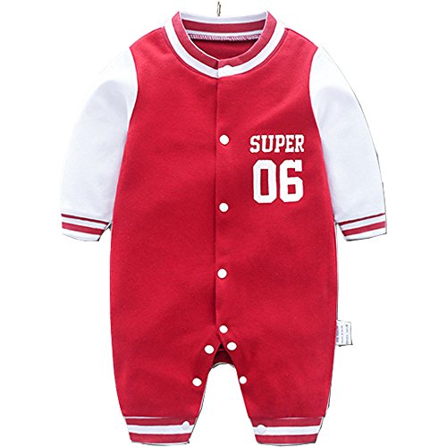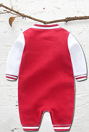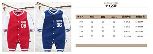 Lisa Pulster ベビー カバーオール キッズ 長袖 スタジアム 子供服 コットン 柔らか レッド ブルー 春秋 (66cm(身長60-66cm), レッド)
