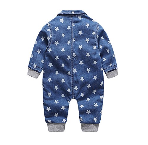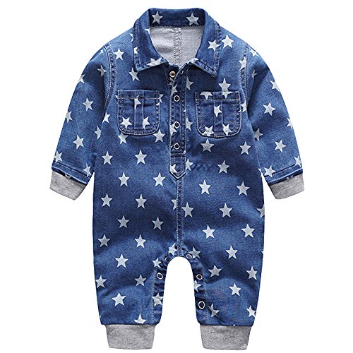 Lisa Pulsterベビー ロンパース カバーオールベビー服 デニム カバーオール ボーイズ ガールズ前開き柔らかスナップお出かけ用 (80)