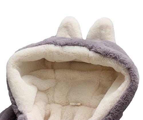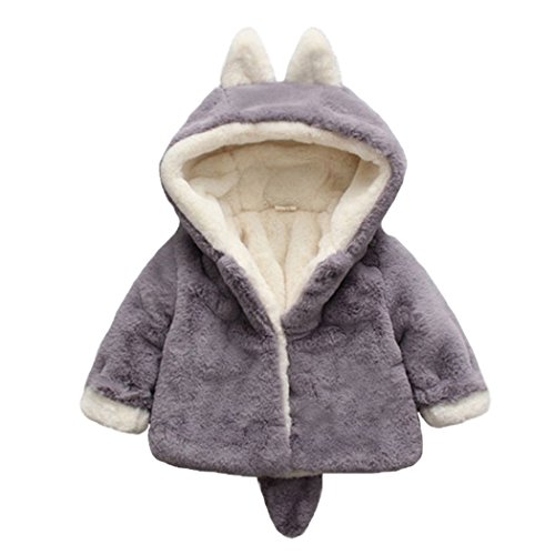 Lisa Pulster ベビー 可愛い コート キッズ アウター ジャケット フード付き 新生児 服 子供服 厚手 ふわふわ 暖かい アウターウェア ソフトコート ウサギ 耳 防寒 女の子 男の子 (グレー, 70)