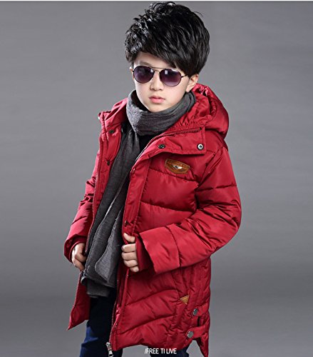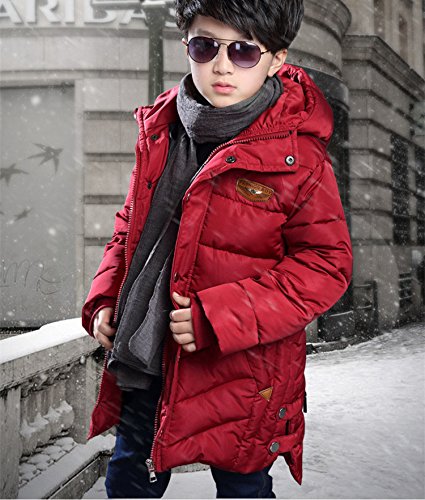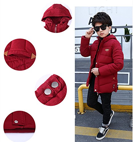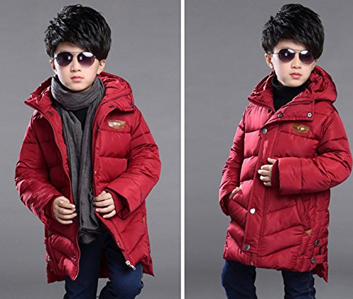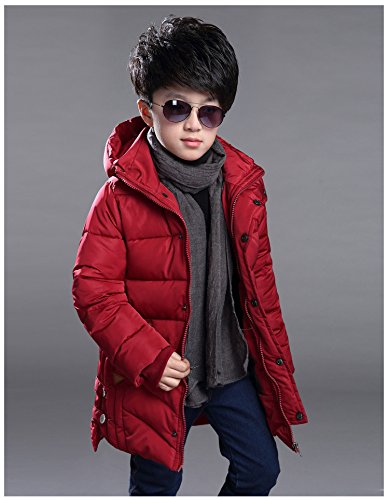 Lisa Pulster キッズ ダウンコート ジャケット 防寒 子ども 男の子 冬 ボーイズ 中綿コート フード付き アウター (レッド, 160)