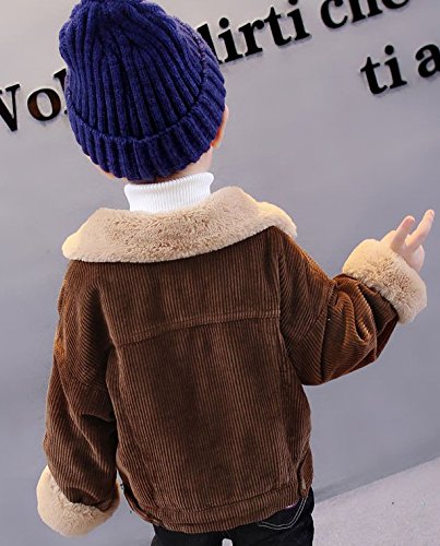 Lisa Pulster 男の子 女の子 コート 子供 冬服 可愛い 厚手 裏起毛 フード付き ショート丈 キッズ あったか 防寒 秋冬 (120cm, ブラウン)