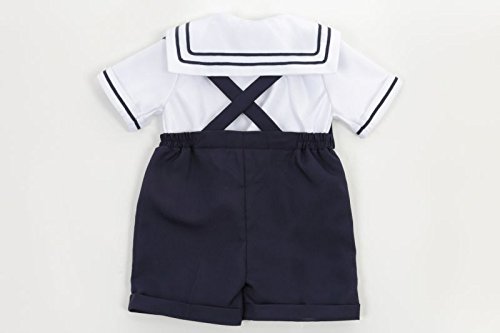 - セーラーカラーのシャツにサスペンダー付きズボン、帽子の可愛くてお得な3点セット。