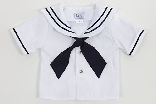 アメリカ老舗のドレスウェアブランドLITOより、マリンセットアップ3点セット。 セーラーカラーのシャツにサスペンダー付きズボン、帽子の可愛くてお得な3点セット。 ボタンはイカリのマークとディテールにも凝っています。 結婚式や入園式、大事なお出かけ、夏の写真撮影にぴったりです! 当店は正規代理店ですので、ここまでお値段が押さえられました! 縫製もしっかりしています。