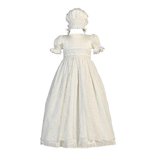Lito Baby Girlsアンティークホワイト刺繍チュールオーバーレイ洗礼シルクガウン6???12?M