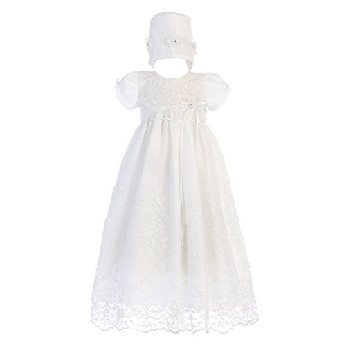 Lito Baby Girlsホワイト刺繍チュールSofiaガウンBonnet洗礼式セット12???18?M