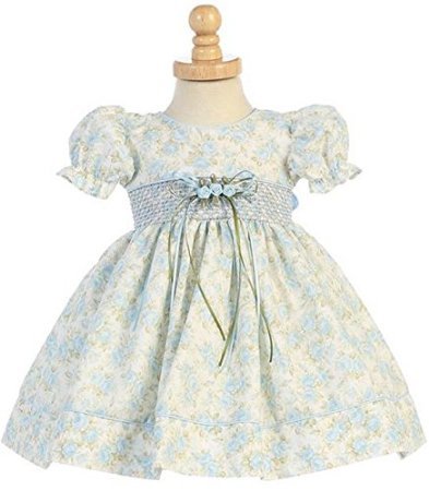 Lito ブルー小花クラシカルベビードレス(3-6/6-12/12-18/18-24M) (0-3ヶ月(50))