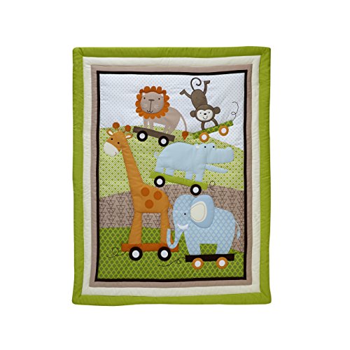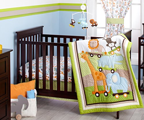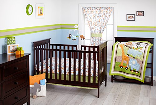 Little Bedding by NoJo Critter Pals Crib set includes comforter, sheet and dust ruffle;100% polyester;Fits a standard size crib mattress, 28 x 52