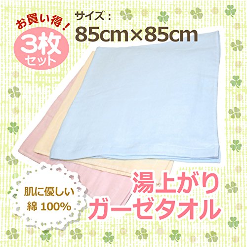 綿100% 湯上り ガーゼ タオル 3色3枚組(ブルー・ピンク・イエロー)85×85cm