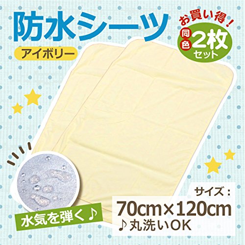 綿 100% パイル地 ベビー 防水シーツ 2枚組 70×120cm (クリーム)