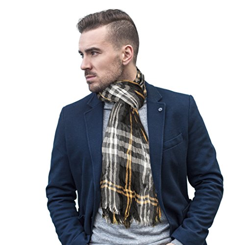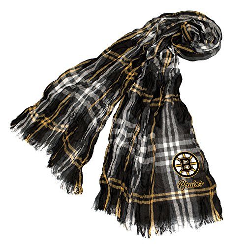NHL Boston Bruins Plaid Crinkleスカーフ、ブラック、Mゴールド、70-inch by 25-inch