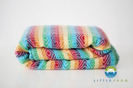 Woven wrap Little Frog - Alexandrite L (4.6 m);Polish woven wrap for babywearing by Little Frog;100% cotton in an amazing jacquard weave. Jacquard is a term used to describe a complex weave -- threads going not just up and done, but in an involved pattern. This fabric combines the complex weave with perky rainbow stripes! Wrapping is one of the best ways to distribute weight for heavier babies and toddlers.;broken twill weave;weight: 190-210 g/m2