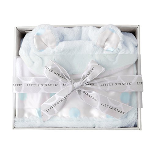 リトルジラフ Little Giraffe おくるみ バスラップ 【正規代理店輸入】 Luxe サテン New Dot フードタオル (ブルー)/BOX入り lg0086-01B