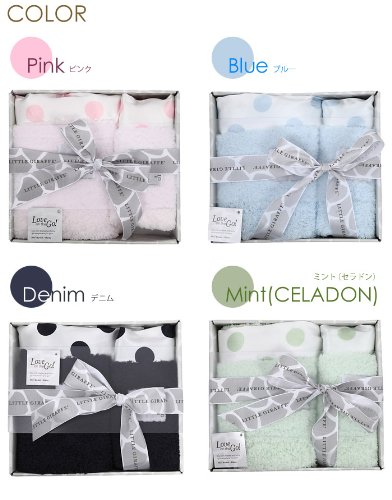 サイズ違いのミニブランケットが2枚セットになってリトルジラフのギフトBOXに入っています。