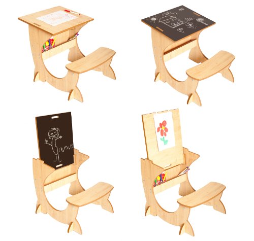 子供たちの想像力を育てる机と椅子の一体型セット 4通りに楽しめます 机取り外して両面使えます 黒板としてお絵かき イーゼルのように立てて使ったりも