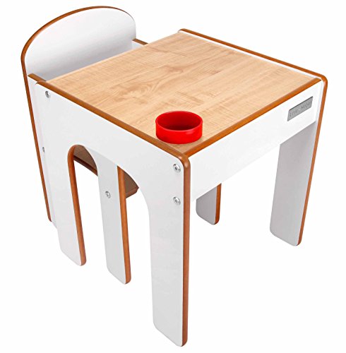 リトルヘルパーオリジナルファンステーション 子供用 テーブル、椅子セット (ペン、筆入れ付き) メープル、ホワイト